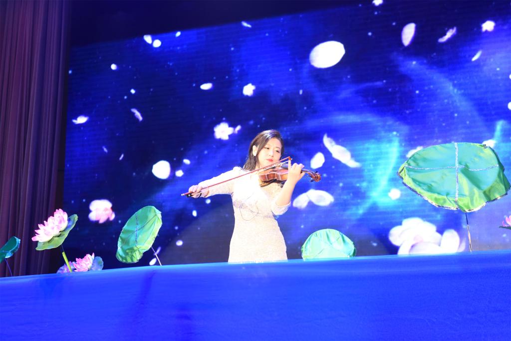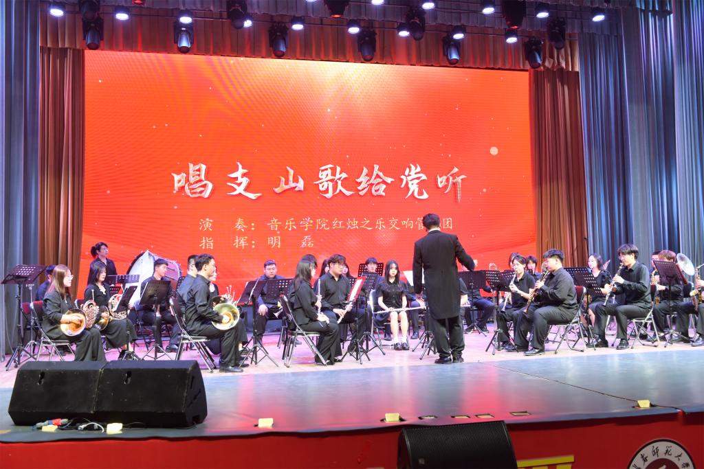 一曲管乐合奏《唱支山歌给党听》,拉开了整场演出的序幕,曲声悠扬,婉转动人,亲切抒发了师生“把党比母亲”的真挚情感,歌曲《领航》讴歌新时代的壮丽辉煌,原创舞蹈《老师·妈妈》展现了支教老师将青春芳华献给大山里的孩子们的伟大精神。古筝合奏《浏阳河》、舞蹈《锦绣》、歌曲《世间哪有这样的情》、小提琴独奏《万泉河水》、双钢琴协奏《保卫黄河》、歌曲《走向复兴》等节目都为在场观众带来了一场视听盛宴。