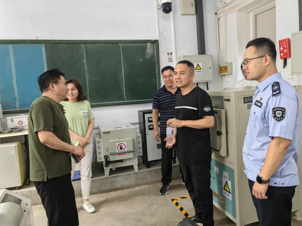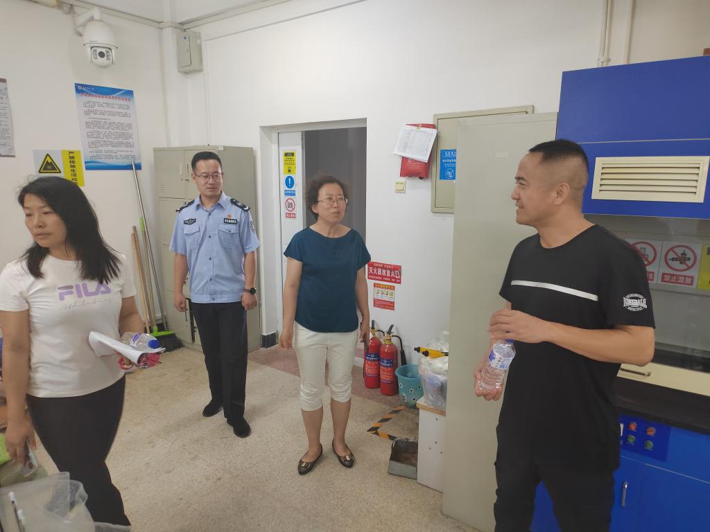 检查组深入化学学院、生命科学学院、物理学院、中心实验室、地理科学学院等单位实验室,重点对学生实验安全、消防安全、危险化学品安全等情况进行了实地查看,并与有关单位负责人及师生交流了解暑期实验室管理、使用情况,对存在的实验室安全隐患要求有效落实整改。整体来看,各单位高度重视暑期实验室安全管理,通过领导干部轮流值班、专人值班巡检等制度,多措并举保障实验室安全。