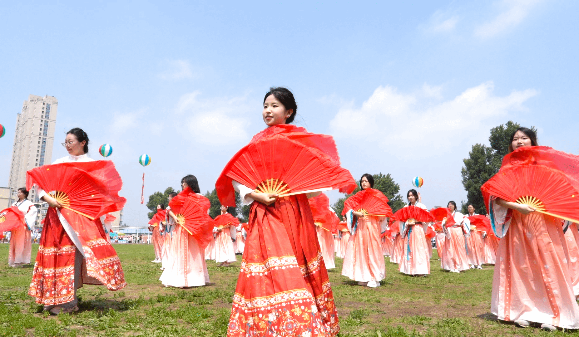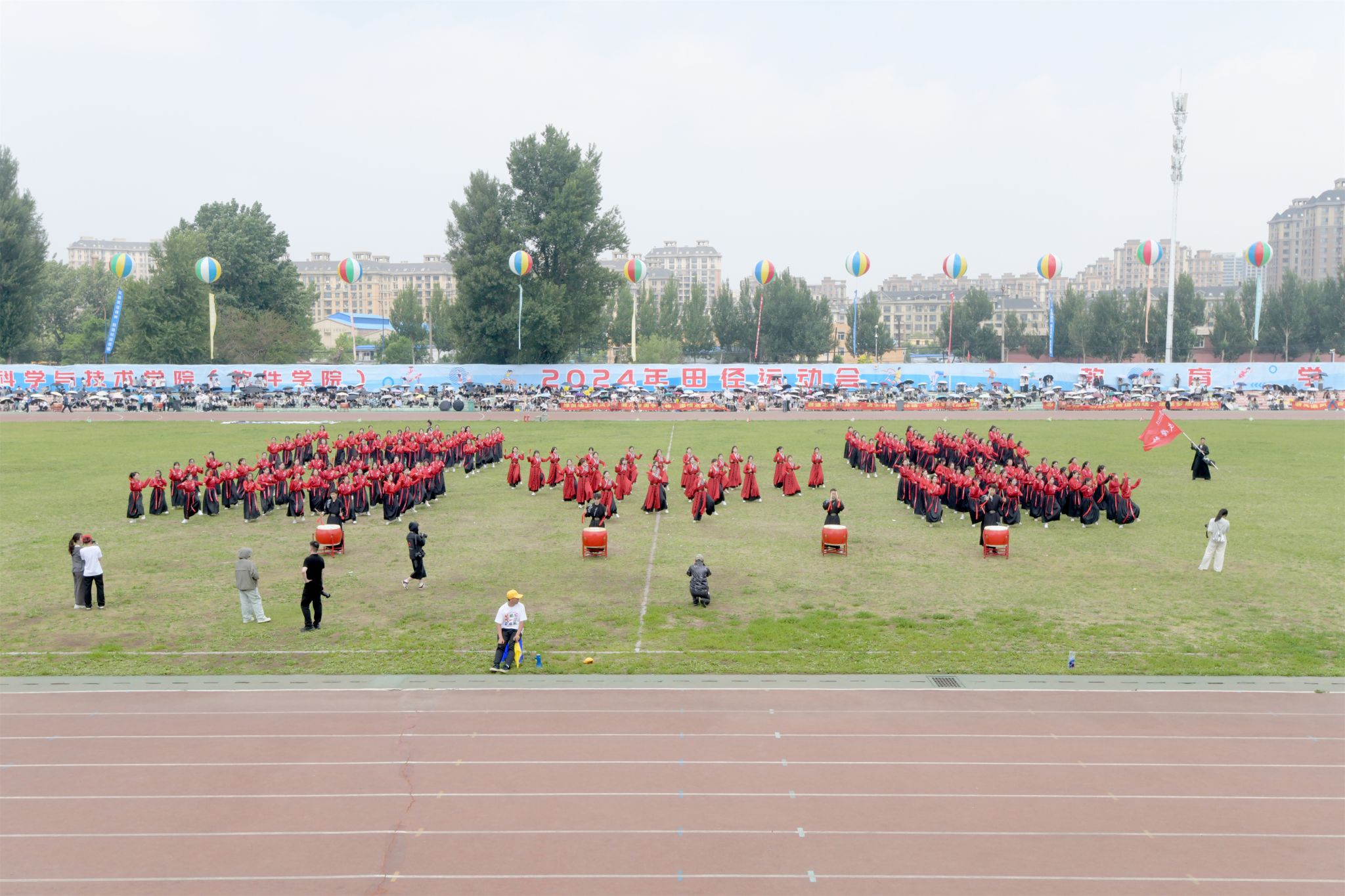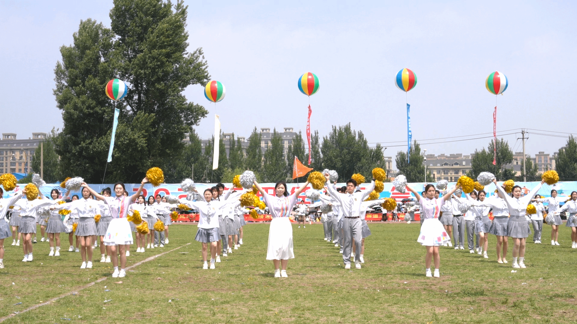 观众席上,旗帜挥舞,热情高涨的同学们为运动员的精彩表现欢呼喝彩,仿佛他们也是赛场的一部分。当运动员冲过终点或跃过横杆,爆发出热烈的掌声和欢呼为运动员的拼搏点赞。绿茵场中,律动优美的百人舞翩翩起舞,随着音乐节奏将每一个舞蹈动作做到与律动节拍完美融合,表达了长师学子对祖国的美好祝福及对未来的欣然向往。