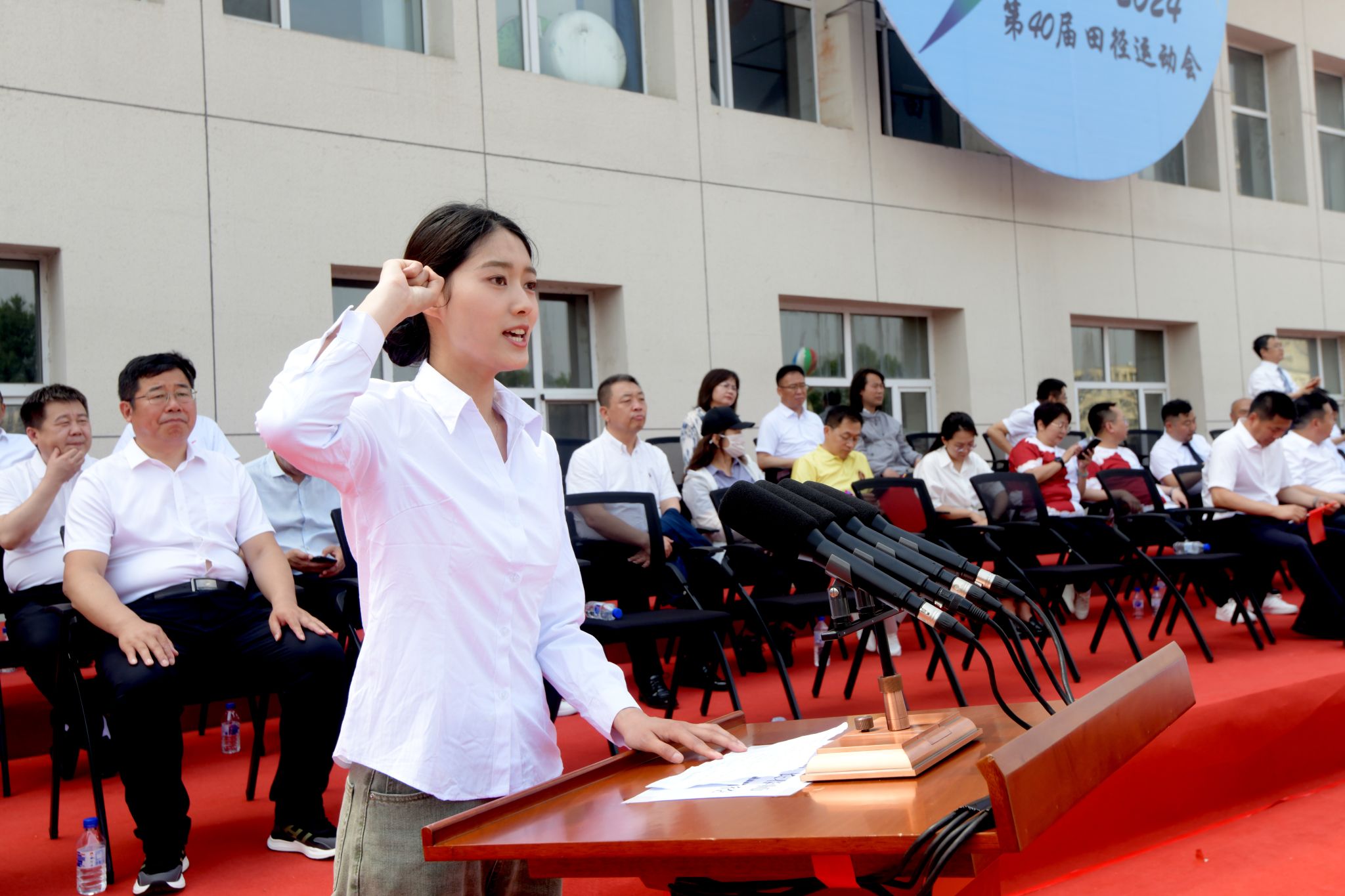 15时,第40届田径运动会完成各项赛事,举行闭幕式。副校长胡德超主持闭幕式。