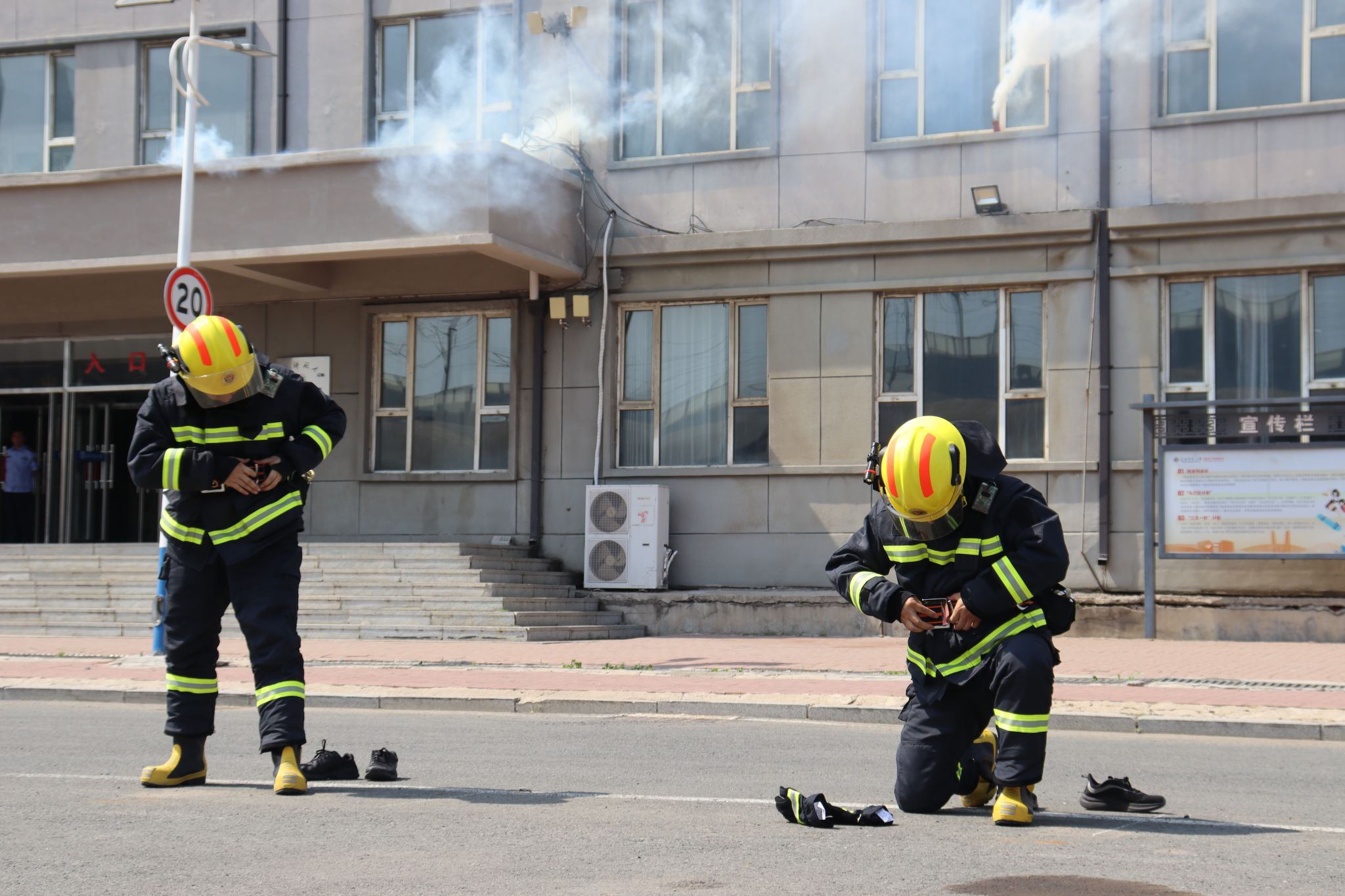 随着长春市二道区消防救援大队大队长、本次消防演练总指挥代宝喜宣布消防演练开始,本次消防演练在第三教学楼正式拉开帷幕。演练中,我校小型消防救援站全体队员在接警后,第一时间到达模拟火场附近进行疏散、灭火和救援工作。紧接着,东荣大路消防救援站、四通路消防救援站4辆消防车及消防救援人员到现场进行支援。消防救援人员利用云梯救援车、金属拉梯解救楼内被困师生,8分钟所有楼内师生解救到安全区域,消防演练圆满结束。