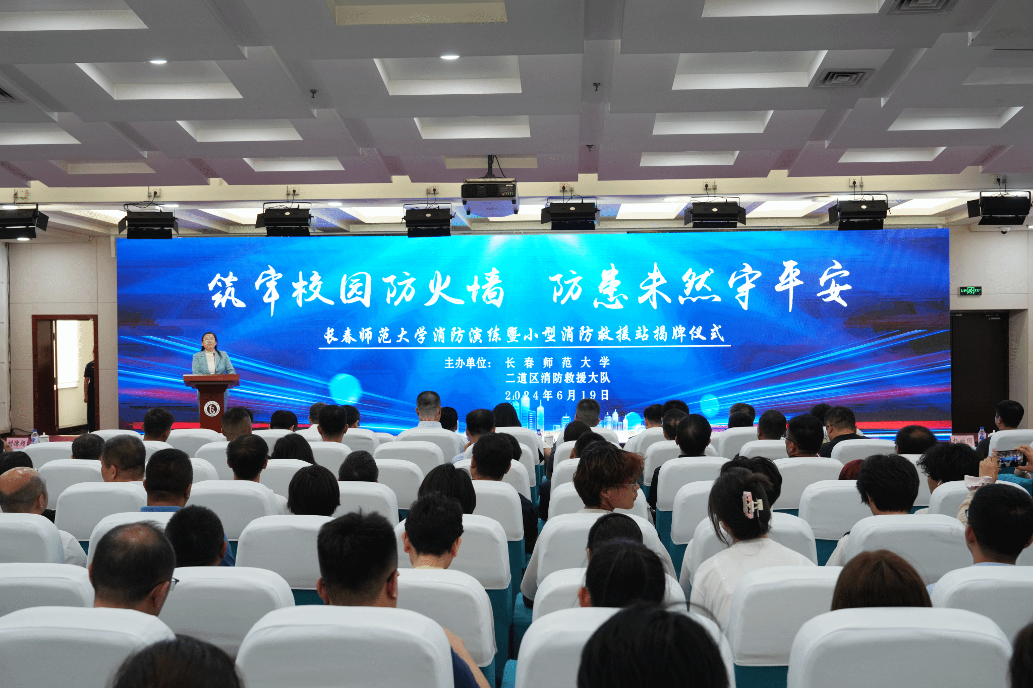 6月19日,我校消防演练暨全省高校首个校园消防救援站揭牌仪式在新图书馆报告厅举行。吉林省教育厅党组成员、省委教育工委专职副书记辛峰,吉林省消防救援总队副总队长靳威,我校党委书记刘多,长春市二道区副区长汤大鹏出席会议并为小型消防救援站揭牌。我校党委副书记、校长王延明出席会议并致辞,副校长陈爱梅主持会议。