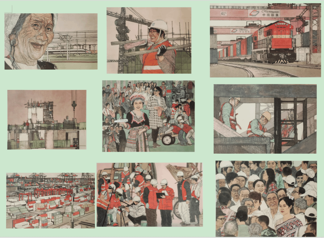 李旭综合画种(连环画)作品《纽带——中老友谊架新桥》