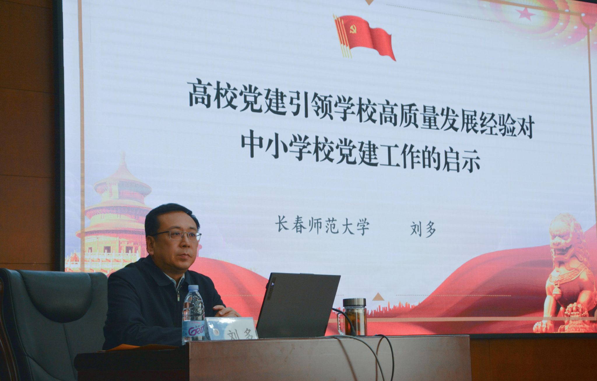 近日,由吉林省委教育工委主办,学校马克思主义学院承办的吉林省中小学校党建工作质量提升示范培训班在长春举行。学校党委书记刘多出席会议并作题为《高校党建引领学校高质量发展经验对中小学校党建工作的启示》的专题报告,副校长胡德超出席开班仪式并致辞。