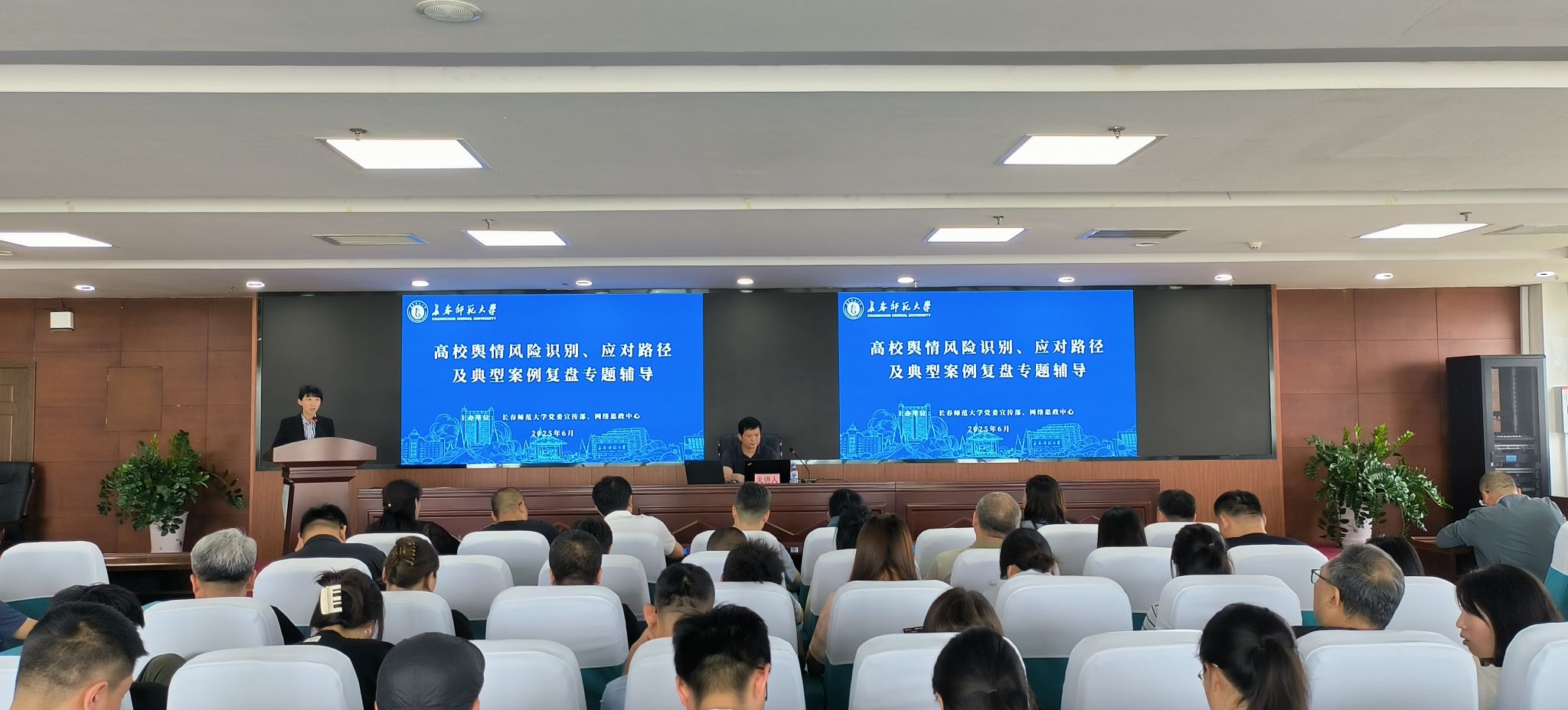 为适应新时代高校宣传思想文化工作的新形势、新任务,提高师生在全媒体时代背景下的网络安全意识,提升宣传工作队伍和学工队伍舆情管理与应对能力,6月12日下午,学校在教学综合楼901会议室举办题为《高校舆情风险识别、应对路径及典型案例复盘》的专题讲座,邀请高级舆情分析师韦天水担任主讲。各学院党总支副书记,机关党委、各党总支网站负责人、新媒体运营人员及全体辅导员参加会议。